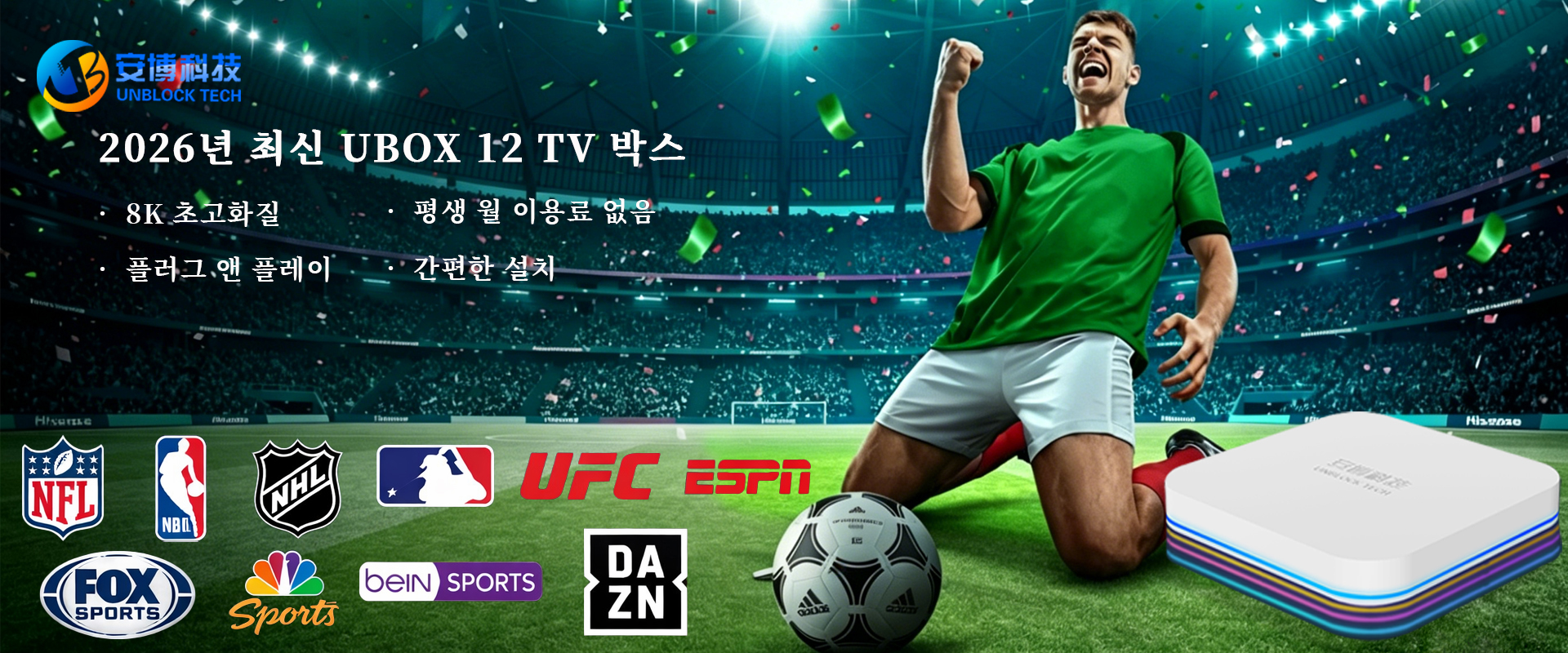 128개의 스포츠 채널 시청 가능, 어떤 스포츠 채널을 좋아하든 Ublock TV Box는 당신의 요구를 충족시킬 수 있습니다.